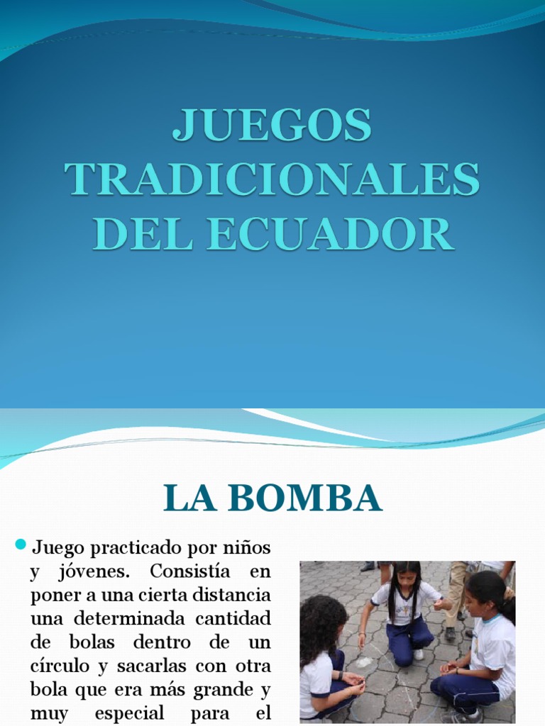 Juegos tradicionales de la costa ecuatoriana. Check spelling or type a new query. Maybe you would like to learn more about one of these? We did not find results for: